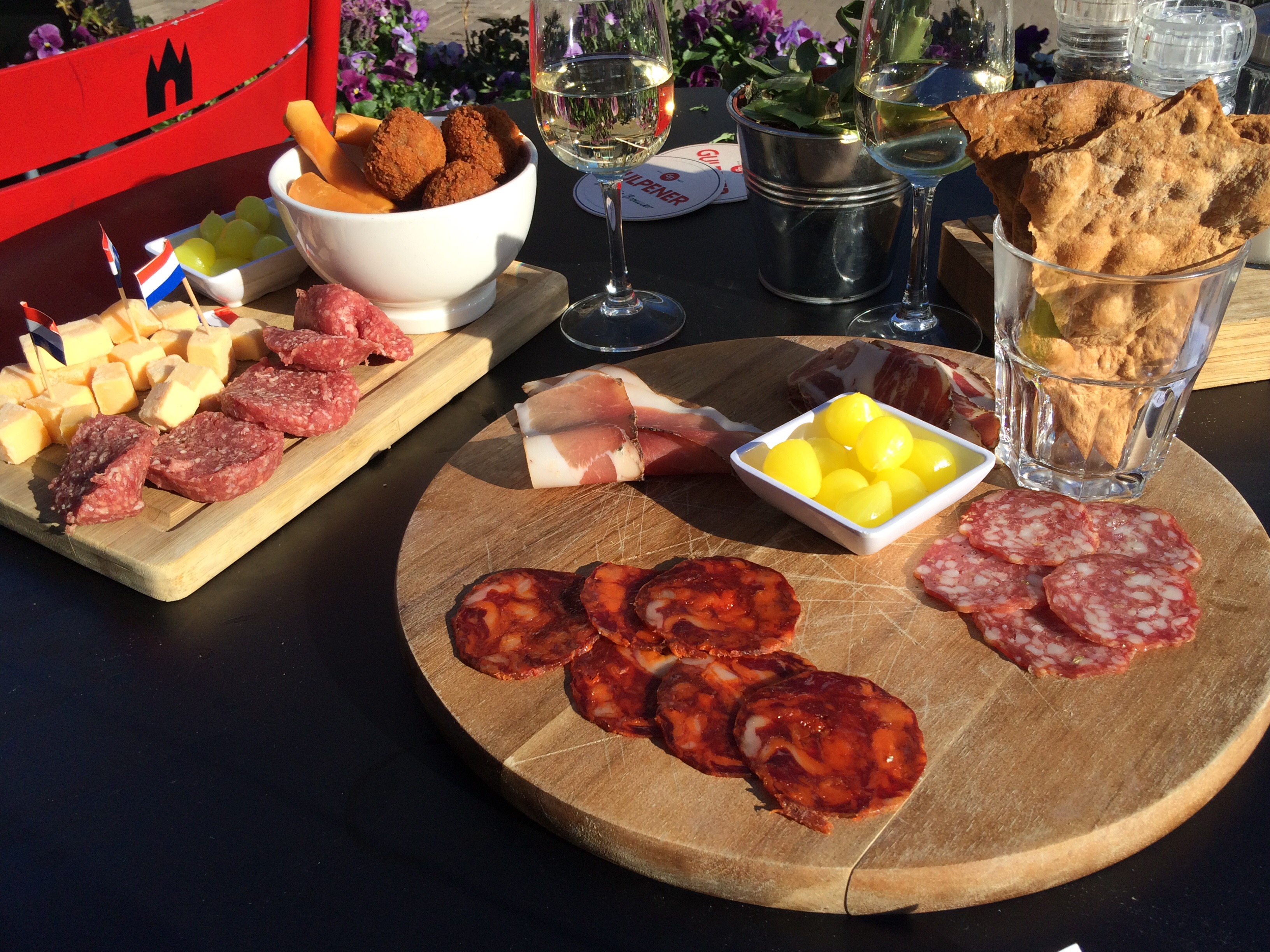 They have 2 kinds of platters this spring. Mixed authentic dutch snacks platter and oberico platter. If I cant decide, I ordered both with a bottle white wine. They have good house pinot grigio.