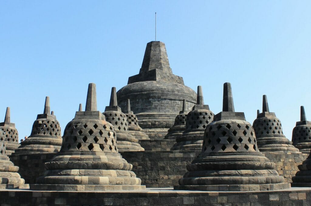 Borobudur is a monumental Buddhist temple in Central Java, Indonesia, renowned as one of the world’s most important Buddhist sites. Constructed in the 9th century during the Sailendra dynasty, the temple embodies the Buddhist conception of the universe through its unique tiered design and houses an impressive 504 Buddha statues. Intricate stone carvings adorn the temple’s walls, vividly depicting Buddhist teachings and everyday life in ancient Java.